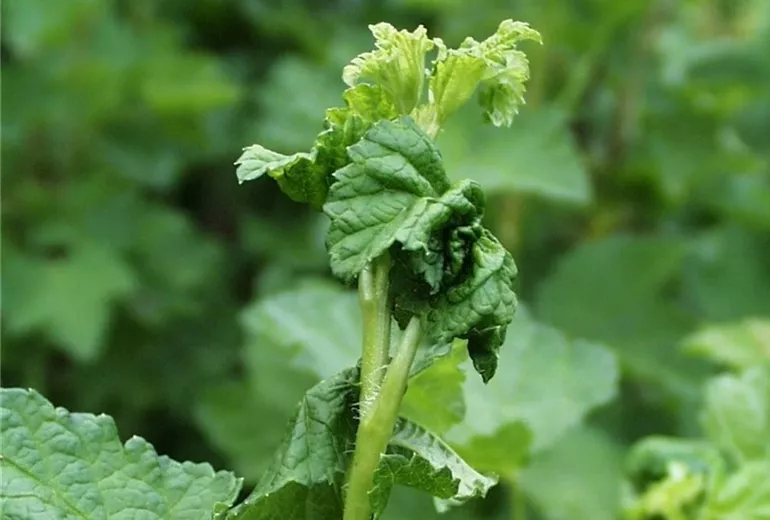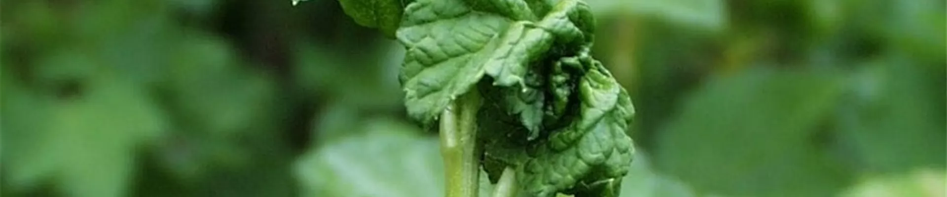 An Johannisbeeren schädigen verschiedene Blattlausarten. Am häufigsten und auffälligsten sind die Schäden durch die Kleine Johannisbeerblattlaus (Aphidula schneideri).