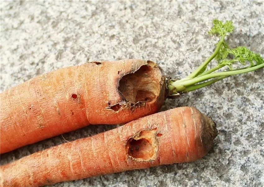 In Jahren mit starkem Erdraupenbefall kann es an Möhren zu Fraßschäden kommen. Der Rübenkopf wird angefressen.