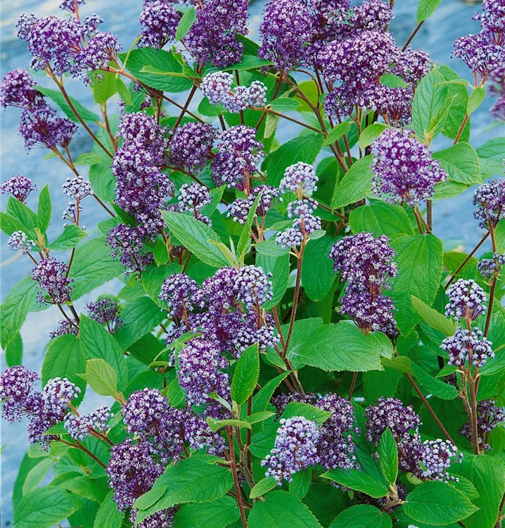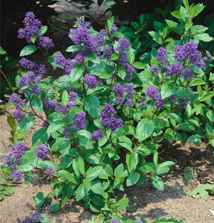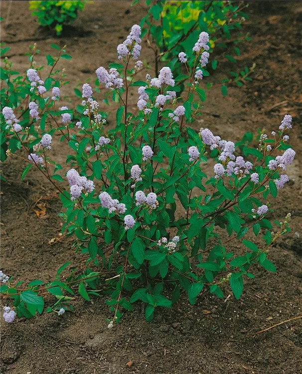 Die Französische Hybrid-Säckelblume (Ceanothus delilianus) ein lockerer Kleinstrauch, der, je nach Sorte, Blüten in verschiedenen Farben hervorbringt. An einem sonnigen bis halbschattigen Standort mit durchlässigem, kalkhaltigem, lockerem Boden erreicht sie gewöhnlich eine Höhe von ca. 1,5 m und wird ca. 1,5 m breit.