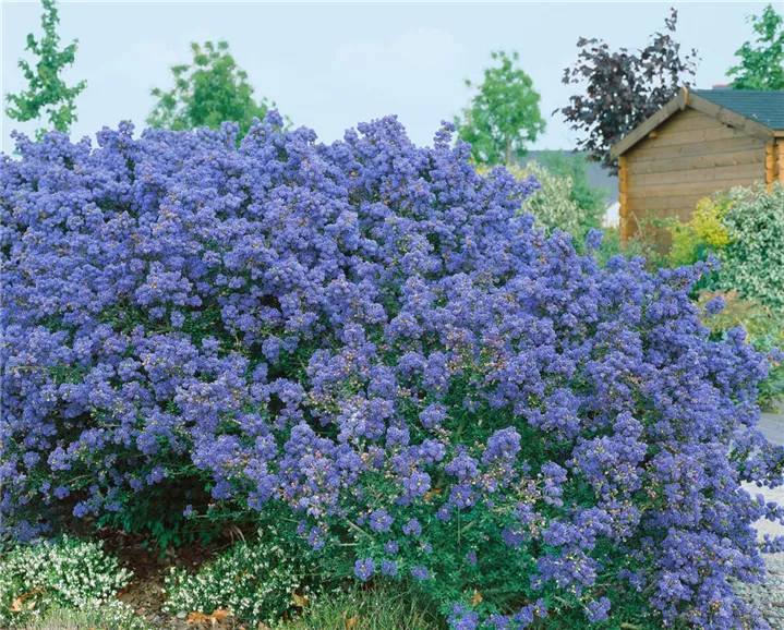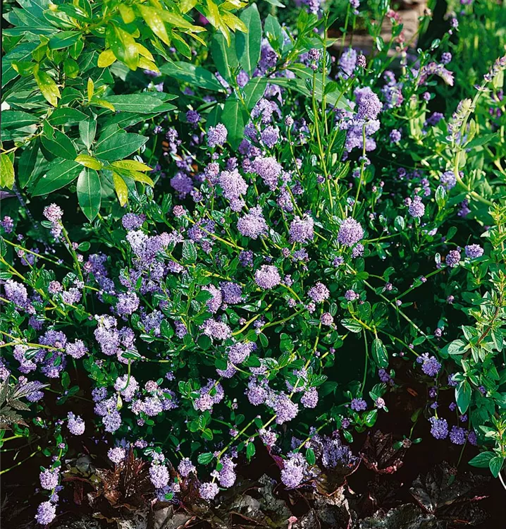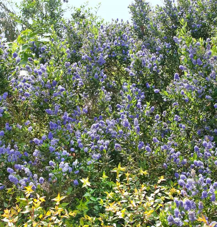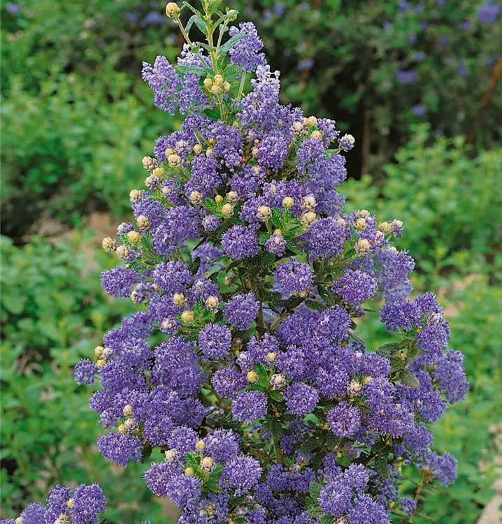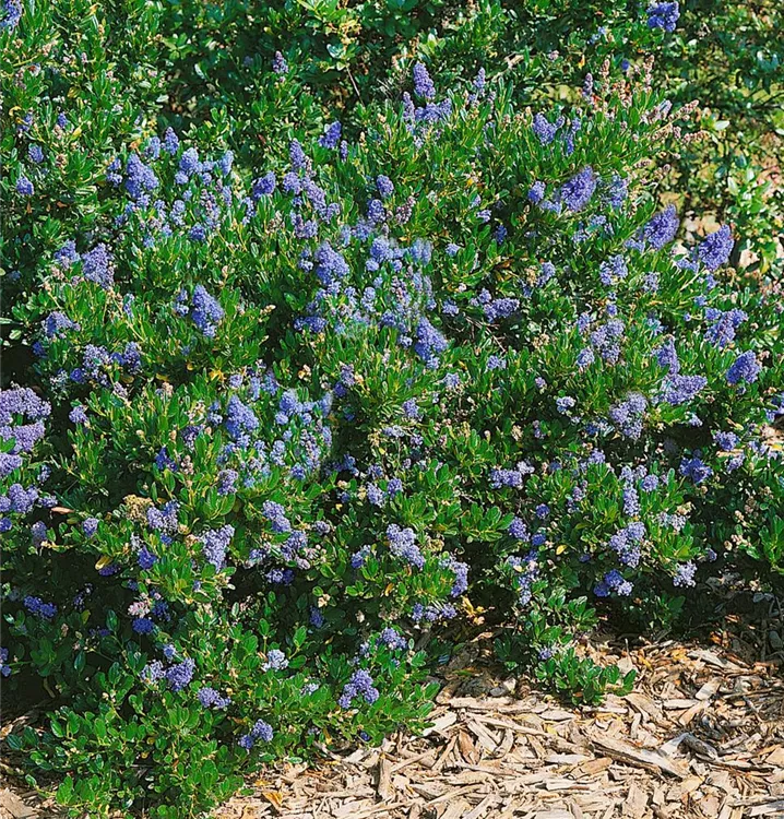 Die Säckelblume (Ceanothus impressus) ein buschiger Strauch, der, je nach Sorte, Blüten in verschiedenen Farben hervorbringt. An einem sonnigen bis halbschattigen, windgeschützten Standort mit durchlässigem, nährstoffreichem Boden erreicht sie gewöhnlich eine Höhe von ca. 1 m und wird ca. 80 cm breit.