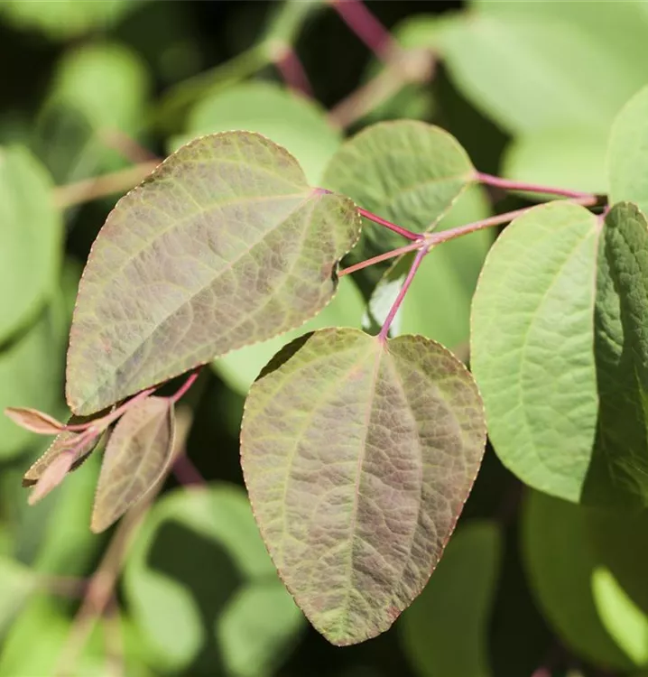 Die sommergrünen Blätter des Kanadischen Judasbaums sind mittelgrün, herzförmig, wechselständig. Diese sind etwa 8 - 14 cm groß.