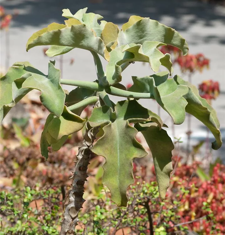 Die Elefantenohr-Kalanchoe (Kalanchoe beharensis) trägt silbergraue Blätter. Diese ausladende Pflanze gedeiht am besten an einem halbschattigen Standort.