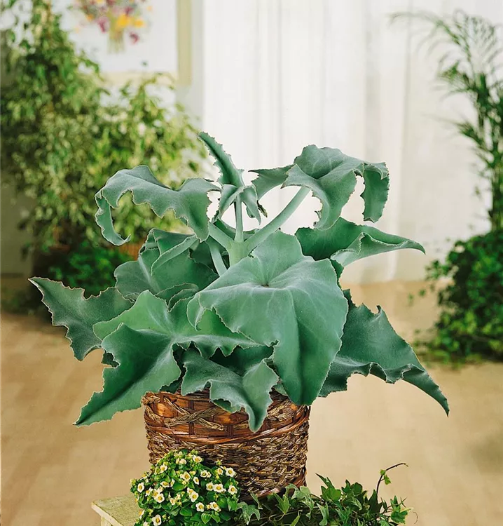Die Blätter der Elefantenohr-Kalanchoe sind silbergrau.