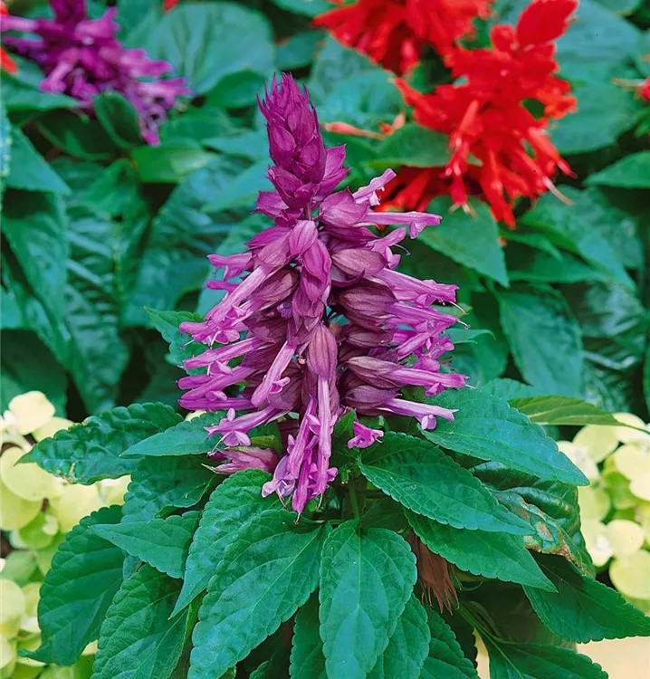 Je nach Sorte, bildet Salvia splendens Blüten in verschiedenen Farben.