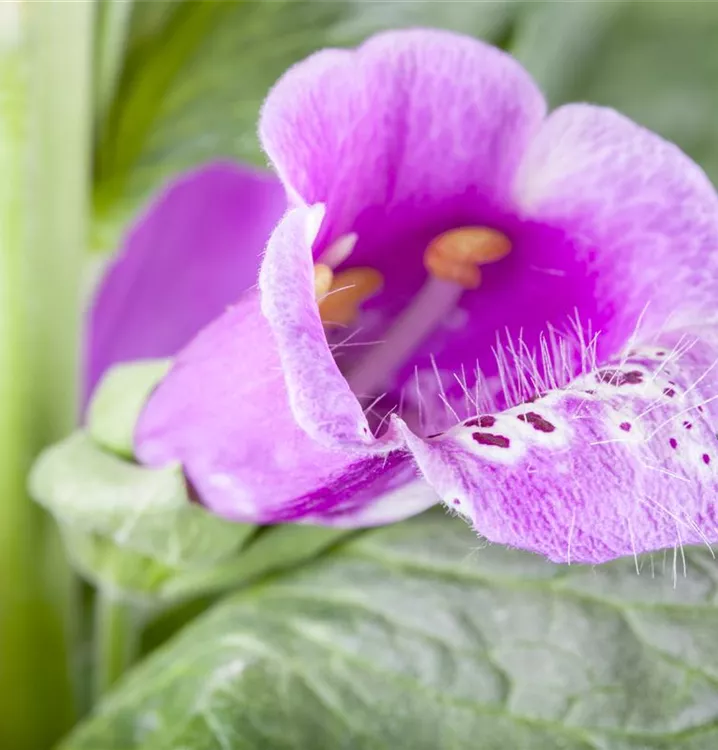 Die wintergrünen Blätter des Garten-Fingerhuts sind mittelgrün, lanzettlich.