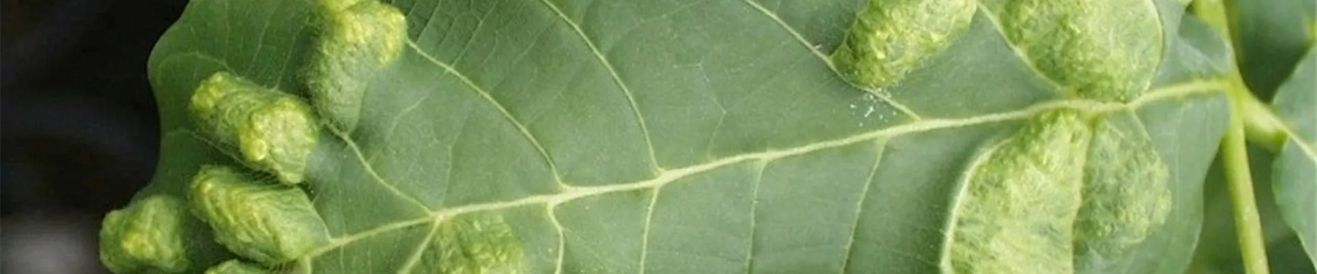 Die auffälligen Filzgallen werden durch die Saugtätigkeit einer winzig kleinen Milbe (Eriophyes erineus) verursacht. Die Tiere überwintern unter Knospen- und Rindenschuppen.