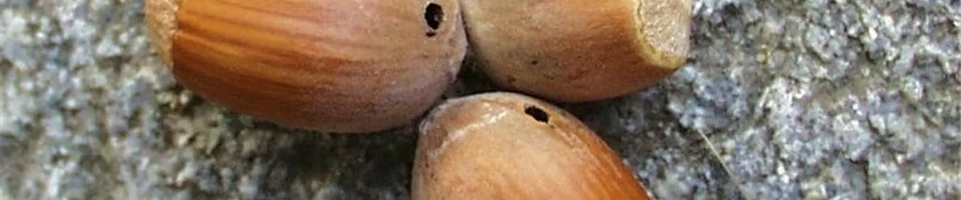 Der Haselnussbohrer ist ein kleiner Rüsselkäfer (Curculio nucum), der seine Eier in die noch unreifen Früchte legt. Die Larven höhlen die Nuss aus und verlassen sie durch das charakteristische Bohrloch, um sich im Boden in einer Erdhöhle zu verspinnen. So überdauern sie den Winter.
