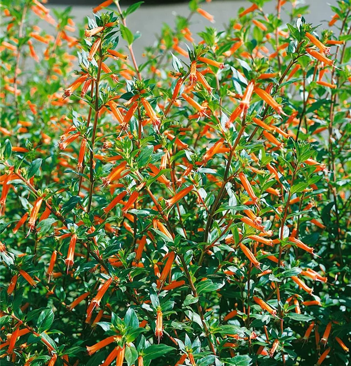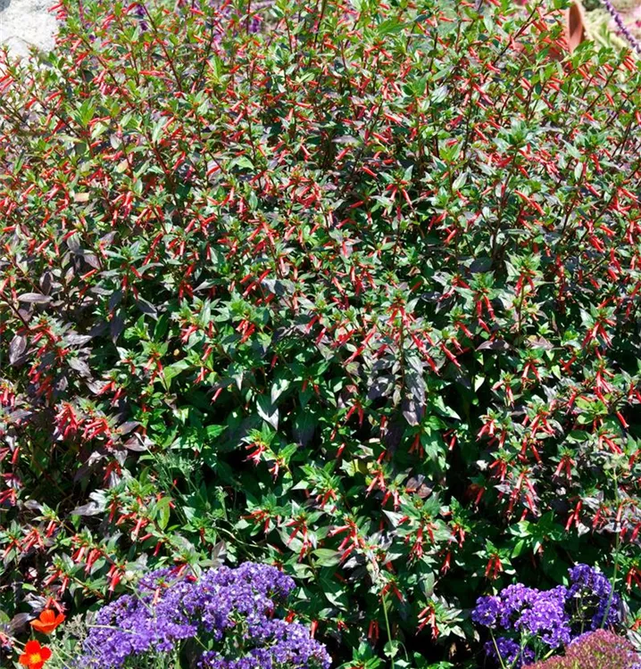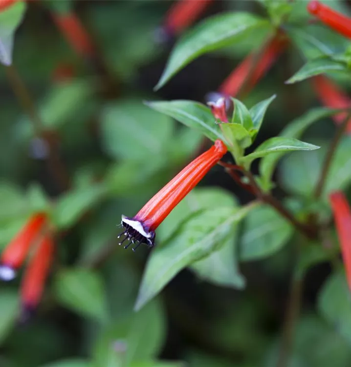 Das Zigarettenblümchen (Cuphea ignea) ist eine beliebte Pflanze für den Balkon. Die unzähligen Blüten erscheinen, je nach Sorte, in verschiedenen Farben die ganze Saison hindurch. Ein sonniger bis halbschattiger Standort und ein durchlässiges Substrat werden bevorzugt.