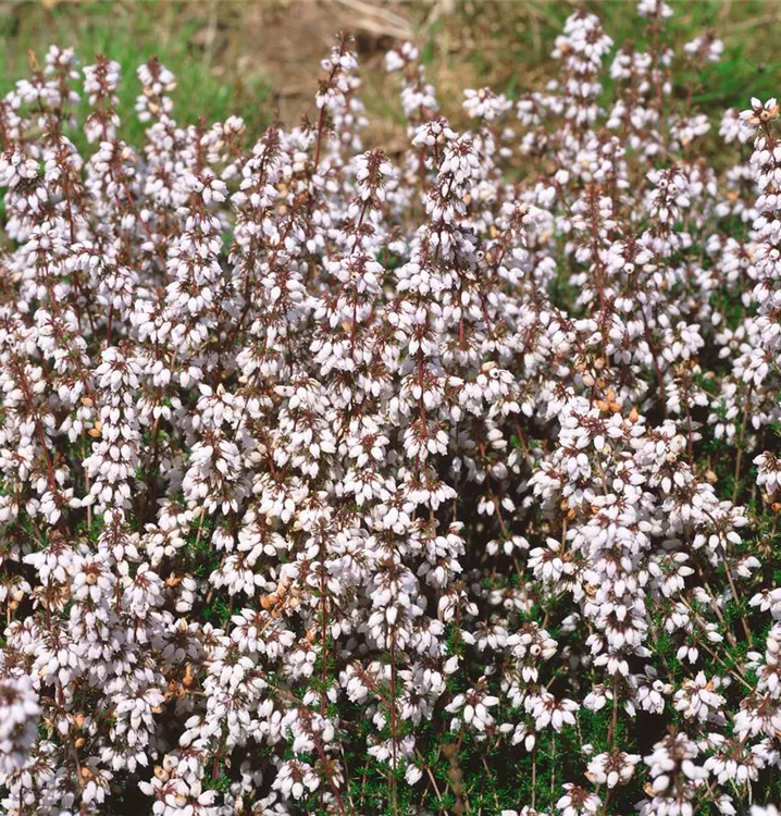Grauheide ist ein aufrecht und dicht wachsender Zwergstrauch, der eine Höhe von 20 - 60 cm und eine Breite von 30 - 50 cm erreichen kann.