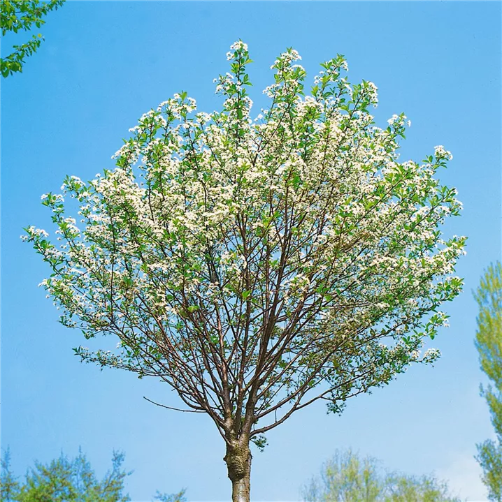 Die Kugel-Steppen-Kirsche 'Umbraculifera' weist eine gute Frosthärte auf.