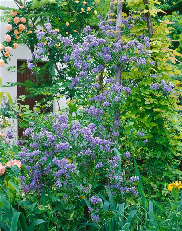 Die blauen Blüten erscheinen von Juni bis September.