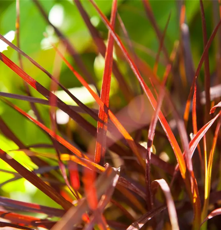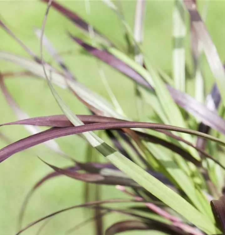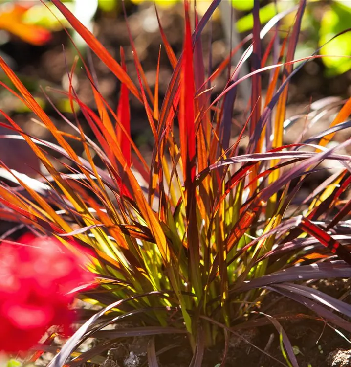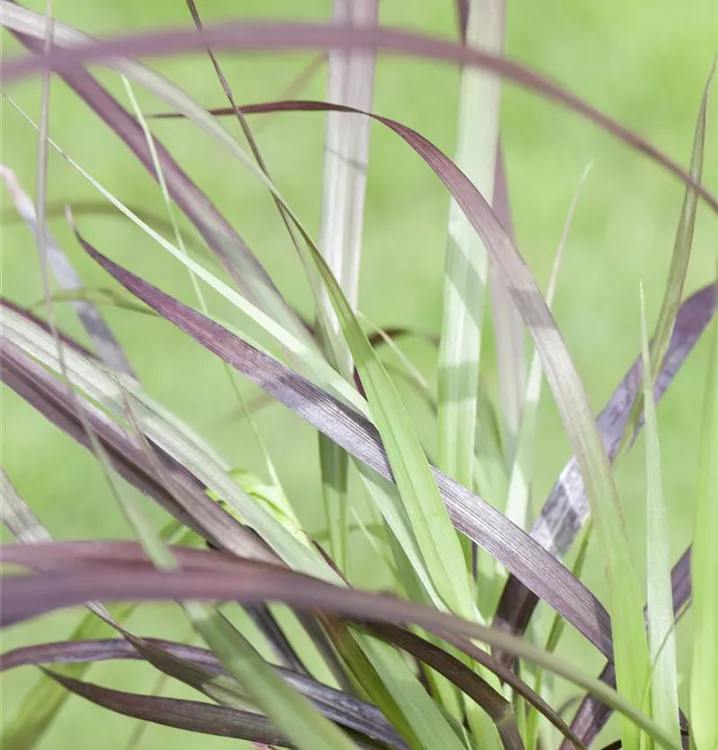 Die sommergrünen Blätter des Federborstengrases 'Rubrum' sind dunkelrot, lanzettlich.